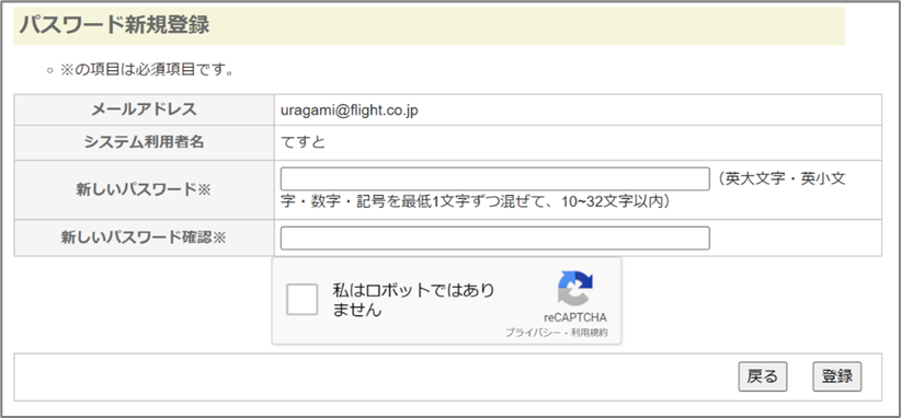 ③パスワード新規登録画面が表示されるので、以下の必要項目を入力し<登録>をクリックする。