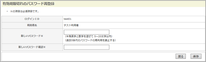 パスワード最終変更日から指定した期間(デフォルトでは90日)経過するごとに、パスワード変更画面を表示します。この画面が表示されたら、新しいパスワードを設定します。