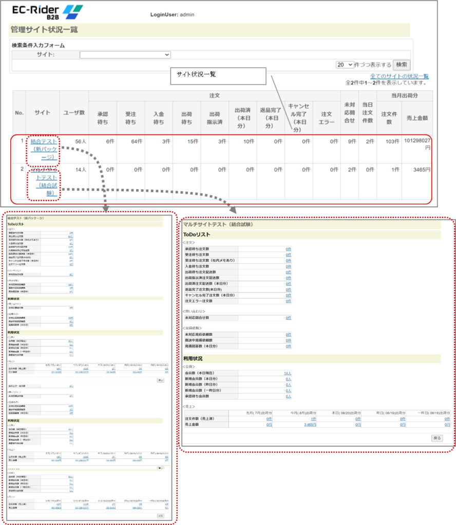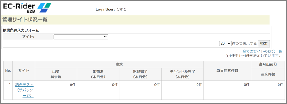 管理サイト状況がサイト毎に一覧表示されます。