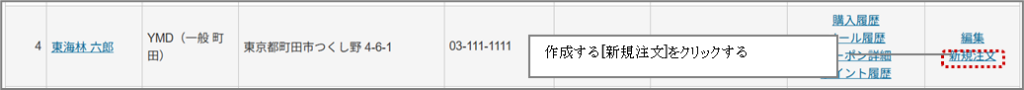 ③フロントユーザ検索一覧より、作成する[新規注文]をクリックする。