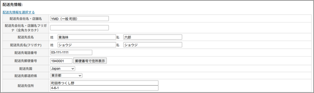 | 配送先氏名※ | 配送先氏名を入力します。 |