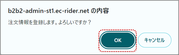 ⑥注文情報登録確認ダイアログボックスが表示されるので<OK>をクリックする。