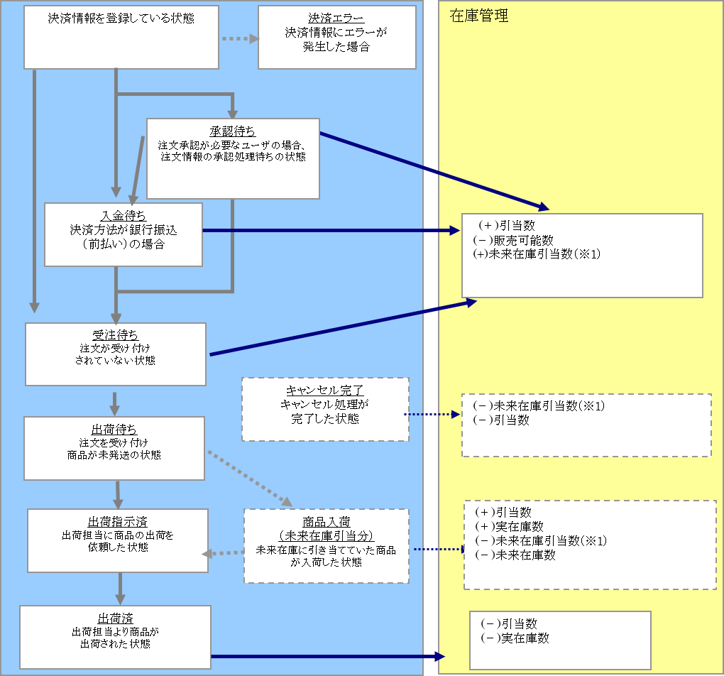 引当の状態: 注文が実在庫に対して引当されている場合、その数量は「引当数」として管理され、他の注文に利用されないように確保されます。