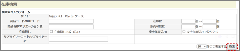 在庫数在庫数の数値を入力します。検索開始個数~検索終了個数を入力することで範囲指定することができます。