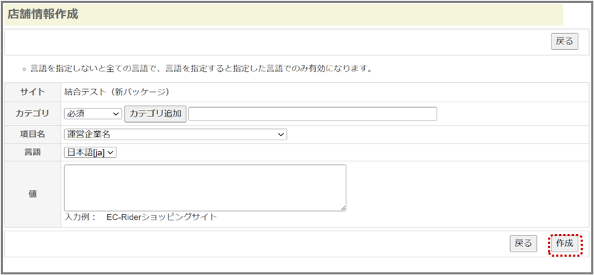 | 16 | カテゴリ※ | 店舗情報検索用カテゴリを設定します。 入力例: 1:xxx,2:xxx,3:xxx,4:xxx |