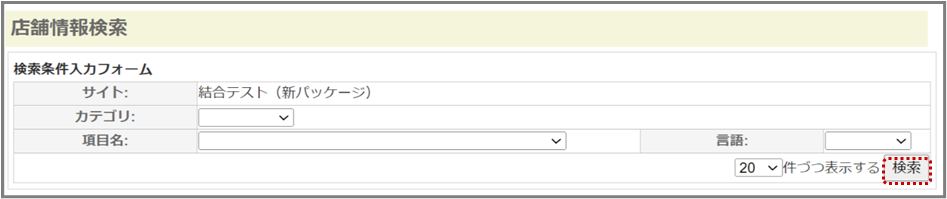 | サイト | ショップ情報を検索するフロントサイトを選択します。 |