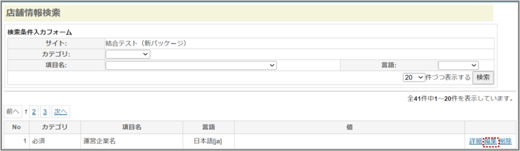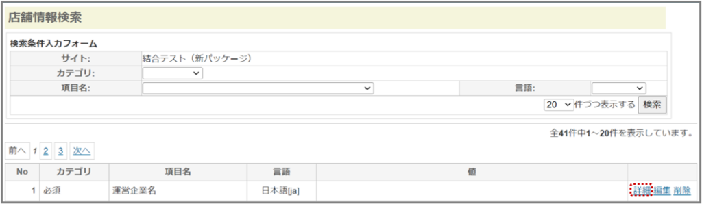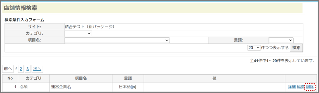 ⑤削除した項目名が店舗情報検索一覧より消えます。