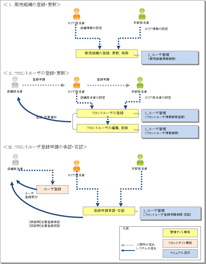 ⅰ. 販売組織の登録・更新…ユーザが所属する販売組織の登録、編集、削除を行います。